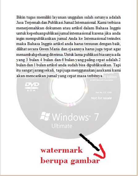 Pembuatan watermark sendiri tidaklah lama, asalkan file yang diserahkan ke kami sudah rapi dan tinggal memberikan watermaks saja. Jika anda ingin menggabungkan file menjadi satu atau membuat menjadi PDF kami juga menerima pekerjaan itu. Watermark memang ditujukan untuk mengurangi plagiasi di bidang penelitian. Karena tidak bisa dipungkiri bahwa banyak sekali plagiasi yang bertebaran di indonesia. Salah satu cara untuk menanggulanginya adalah dengan watermark. Dengan watermark jika dokumen anda berbentuk pdf di convert ke word maka biasanya akan rusak parah tidak karuan. Apagi ada gambar dan tabel biasanya tidak bisa untuk diplagiasi karena pasti rusak.